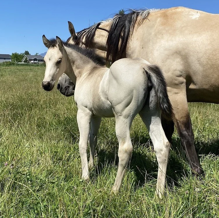 A buttermilk buckskin filly like this comes around only once every few years. She is well balanced, incredibly beautiful, and a very strong reflection of what our breeding targets. This filly will be elegant and light on her feet, by design she will be compact with a baby doll head and a big hindquarter. She already is eye-catching and should really dig into anything you ask of her. Excellent queening prospect, show prospect, or ranching prospect for doctoring, gathering, and dragging cattle to the fire. She has the potential to go any direction from cutting, working cow horse, western, 4H, poles, team penning, or pleasure trail riding. She has no markings, just jet black legs, and a face you fall in love with. Don't miss out on this beautiful filly!