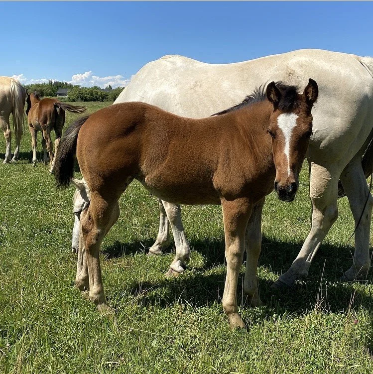 This filly is by Blue Frosty Ed our big handsome blue roan stallion. Offspring of Blue Frosty Ed has a wonderful disposition, lots of bone, and is built to be for long days on the ranch. Ed is a big 15.1 hand blue roan with loads of muscle mass and great ranch conformation. Ed goes back to roping greats such as Driftwood, Hancock, Lucky Blanton, Poco Bueno, Three Bars, Leo, Eddie 40, Oklahoma Star, Zantanon, and Grey Badger II. We love the cross with this stallion and he produces some very intelligent and flashy foals. This colt has a star on his face and white on his back right sock, he is awesome and the friendliest from this crop. He has been soft and sweet to be around and is sure to be athletic and strong.