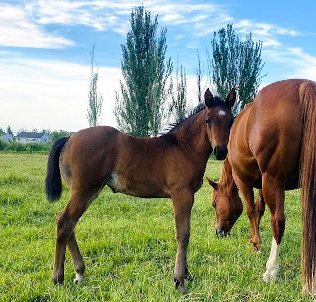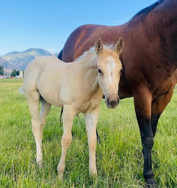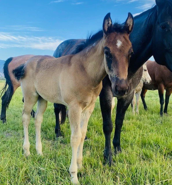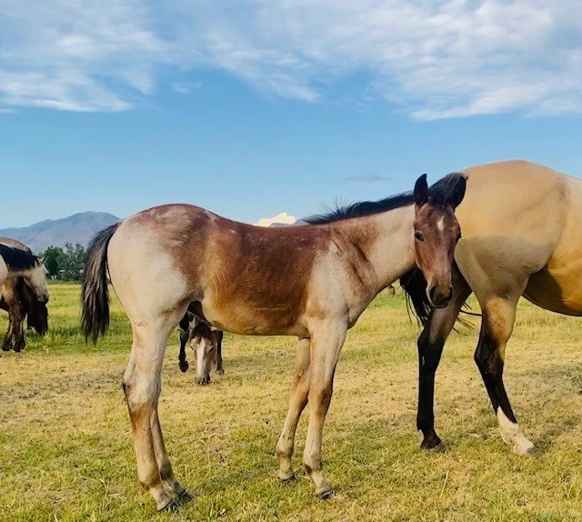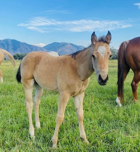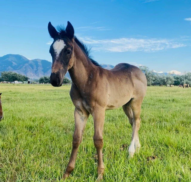 This filly is going to be a stocky gal that will be a bay roan color and plenty of character with his breeding and conformation. She is built to travel all day with a short strong back and stout strong legs. She is bred for speed, intelligence, and versatility. With her potential size and ability, we anticipate a great cutting horse, rope horse, 4H horse, or trail horse. We invite you to come check her out!