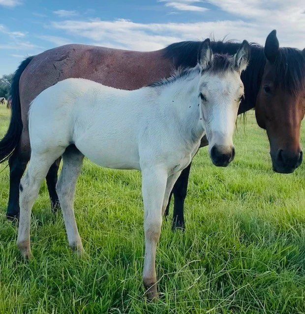 This filly is by Blue Frosty Ed our big handsome blue roan stallion. Offspring of Blue Frosty Ed has a wonderful disposition, lots of bone, and is built to be for long days on the ranch. Ed is a big 15.1 hand blue roan with loads of muscle mass and great ranch conformation. Ed goes back to roping greats such as Driftwood, Hancock, Lucky Blanton, Poco Bueno, Three Bars, Leo, Eddie 40, Oklahoma Star, Zantanon, and Grey Badger II. We love the cross with this stallion and he produces some very intelligent and flashy foals. This filly has a star on his face and white on his back left sock, she is awesome and very shapely from this crop. She has been soft and sweet to be around and is sure to be athletic and strong.